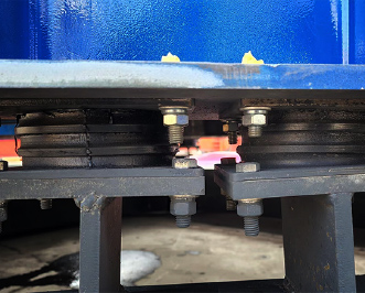 A high-strength rubber shock absorber mounted between the base and the machine body absorbs vibrations generated during operation and eliminates their effect on the support structure. In the event of significant vibration outside the permissible range, an electronic vibration monitor records it and shuts down the machine.